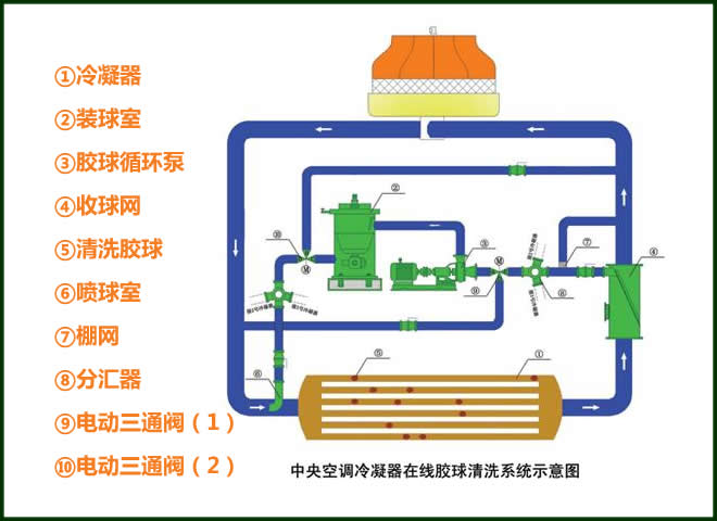 冷凝器膠球自動(dòng)清洗裝置系統(tǒng)組成