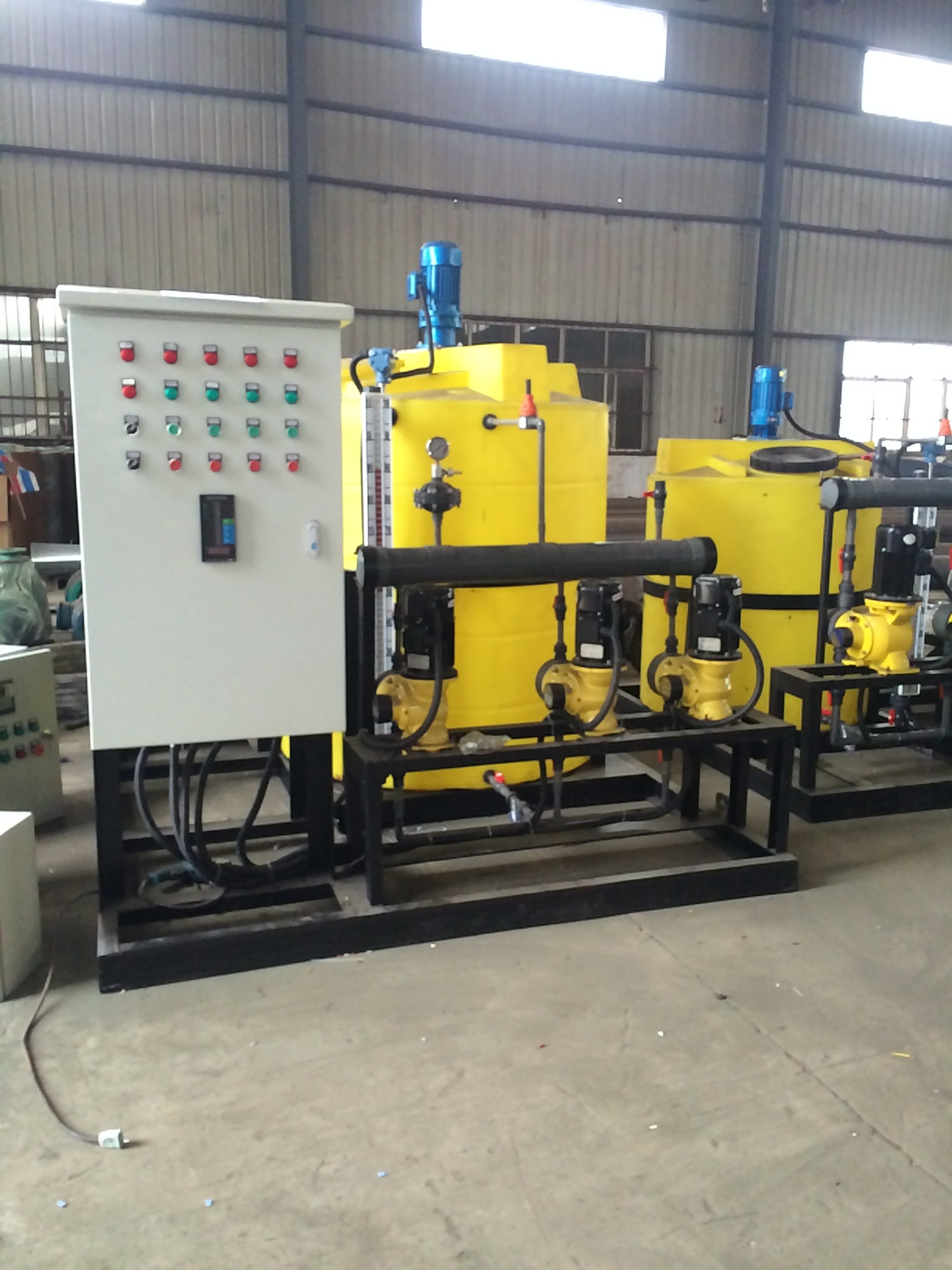 制造廠完成設(shè)備購(gòu)置、制造、組裝、調(diào)試、試運(yùn)行,用戶只需將智能型全自動(dòng)加藥裝置安放在加藥間后,將計(jì)量泵出口與加藥管路、計(jì)量箱進(jìn)出口與進(jìn)水管等連接好,并將控制柜電源和檢測(cè)儀表信號(hào)送到控制柜就可以啟動(dòng)、投入運(yùn)行。這樣可以大大減少現(xiàn)場(chǎng)施工工作量,避免了中間環(huán)節(jié)繁多引出的差錯(cuò),有效地保證工期和工程質(zhì)量,減少用戶的麻煩和損失。